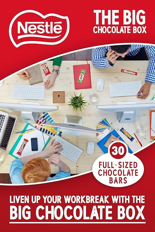 The Big Chocolate Box features 5 of Nestle’s most iconic snacks in one box, with 30 full-size bars making an ideal gift for any celebration, sharing or breaktime occasion. Features 6 x 4 Finger Milk Chocolate KitKat, 6 x Milk Chocolate Yorkie, 6 x Aero Peppermint Bubbly Bar, 6 x Munchies Tube, 6 x KitKat Chunky Milk