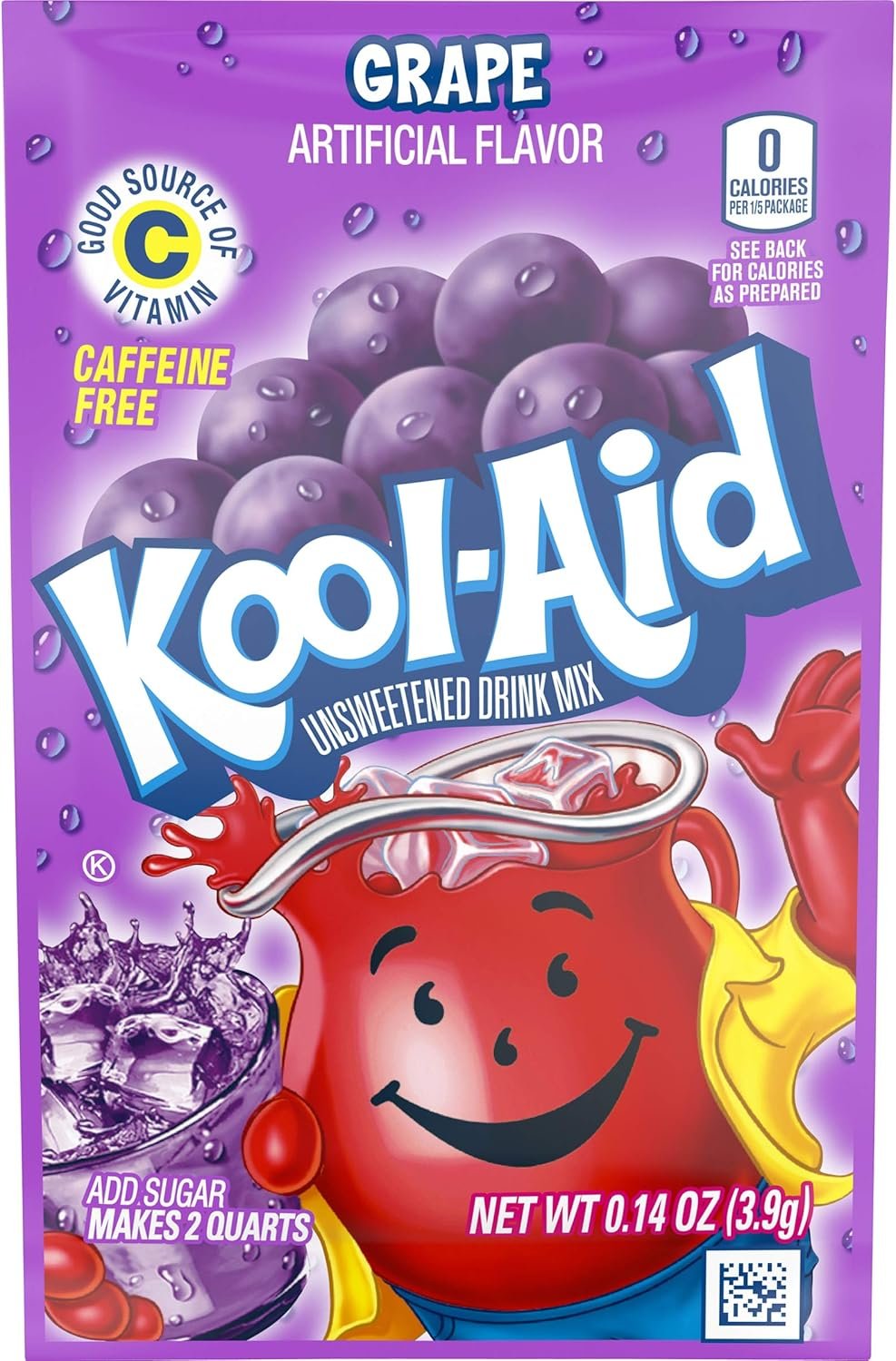 - Fifty 0.14 oz. packets of Kool-Aid Artificially Flavored Unsweetened Powdered Drink Mix